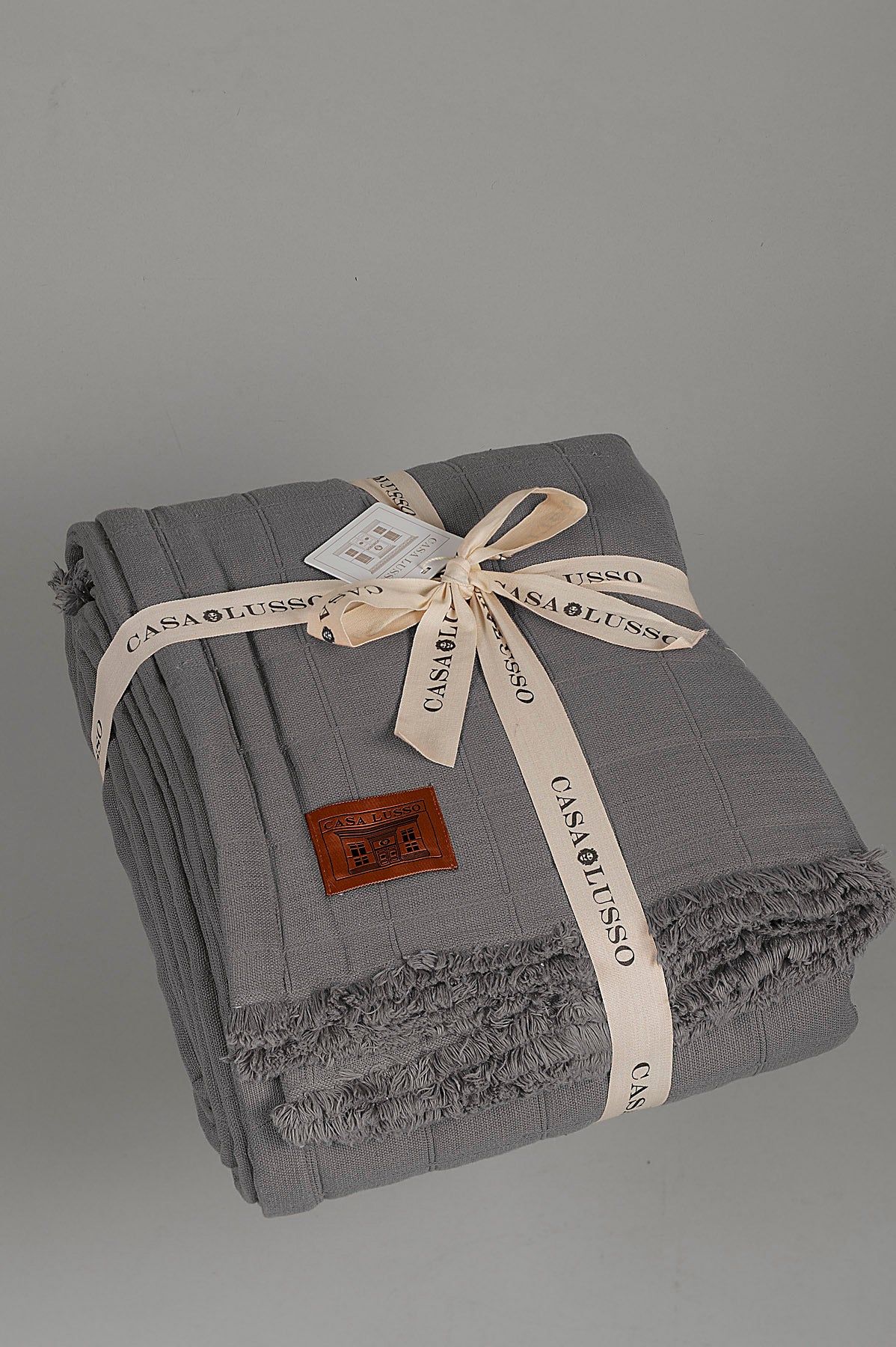 Bawełniana narzuta z fakturą - ASH GRAY